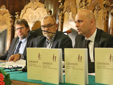 No, da se vratim ipak na ovaj 13. svezak. O njemu će više pričati drugi, prije svega naš gost profesor Vrbošić, koji je već predstavljao 9. svezak sa prof. Stanislavom Marjanovićem u ovoj dvorani 2010. godine a inače je i kao ondašnji veleposlanik RH u BiH bio i gost na sarajevskoj promociji Leksikona.